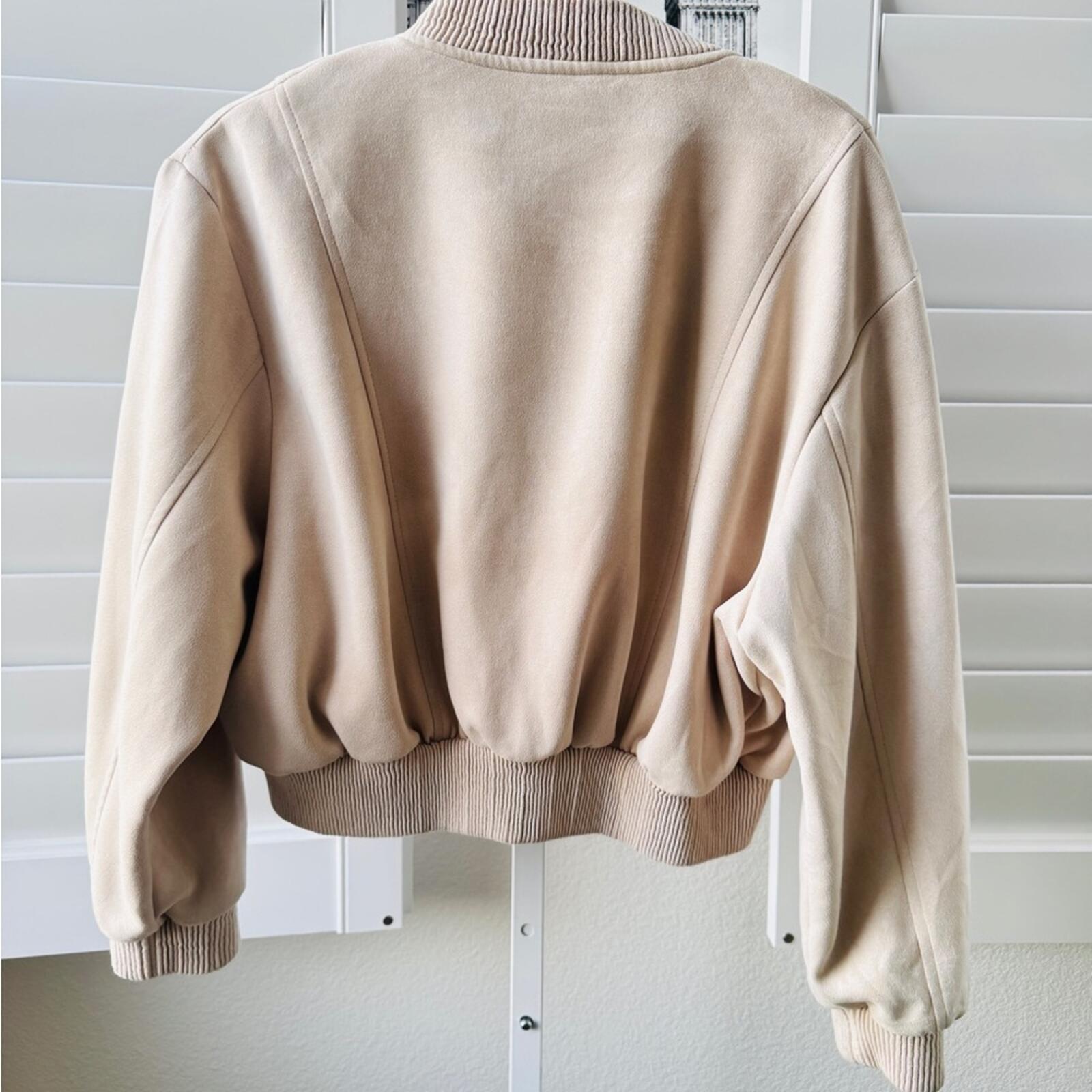 The fabric of this Zara bomber has a distinct soft, brushed texture that mimics the look and feel of suede or heavy felt, making it perfect for transitional weather.
